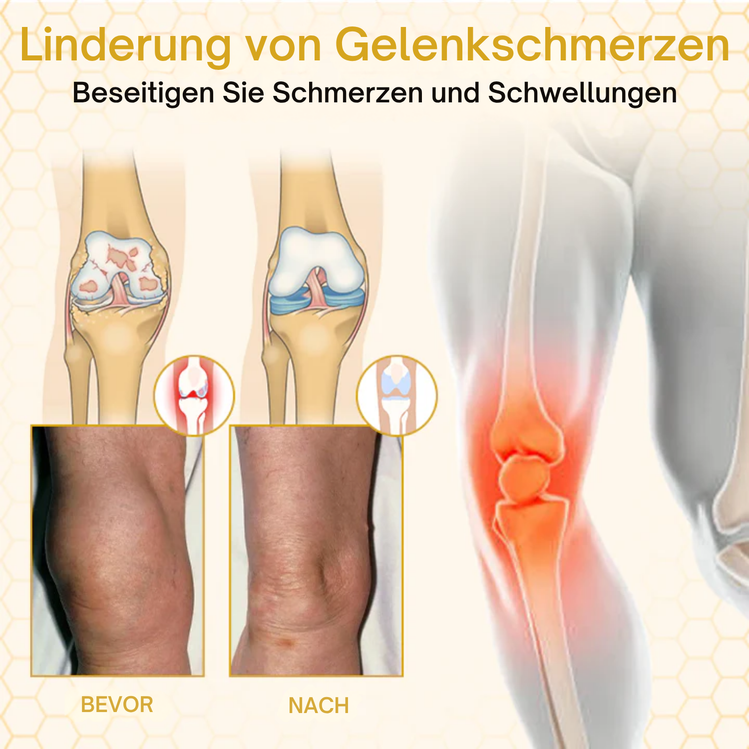 1️⃣ Wirkt gezielt an der Wurzel von Gelenkschmerzen – Gereinigte Bienengiftpeptide (Melittin) dringen unter die Haut und lindern Entzündungen in Gelenken, Muskeln und den umliegenden Nerven.